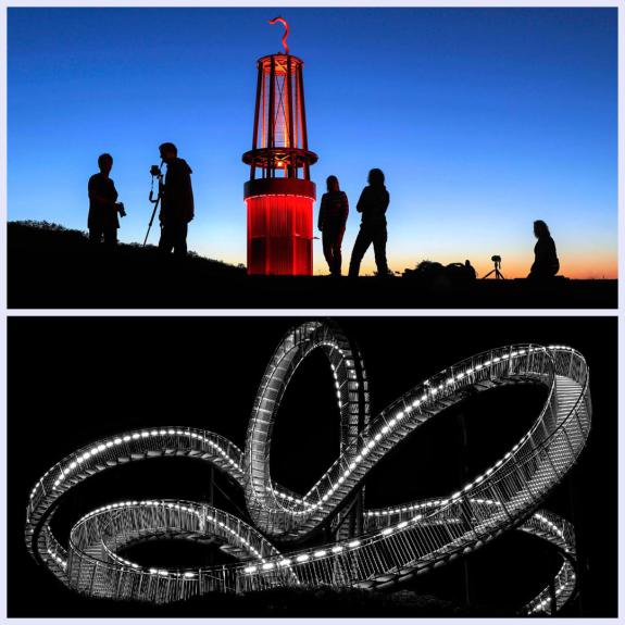 - Tiger & Turtle in Oberhausen: Nach dem Geleucht geht es weiter zum ikonischen Tiger & Turtle. Hier hast du die Möglichkeit, die beeindruckende Architektur bei Nacht festzuhalten. Du bekommst Tipps, wie du die Struktur und die Lichter der Skulptur optimal in Szene setzt.